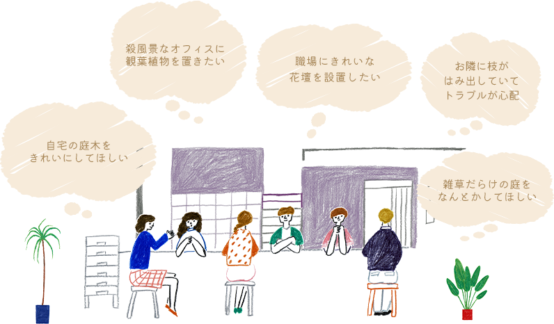 私たちはその願いを実現するために、専門資格を活かした知識と高度な技術で、屋内外問わず美しいグリーン空間を作り上げます。